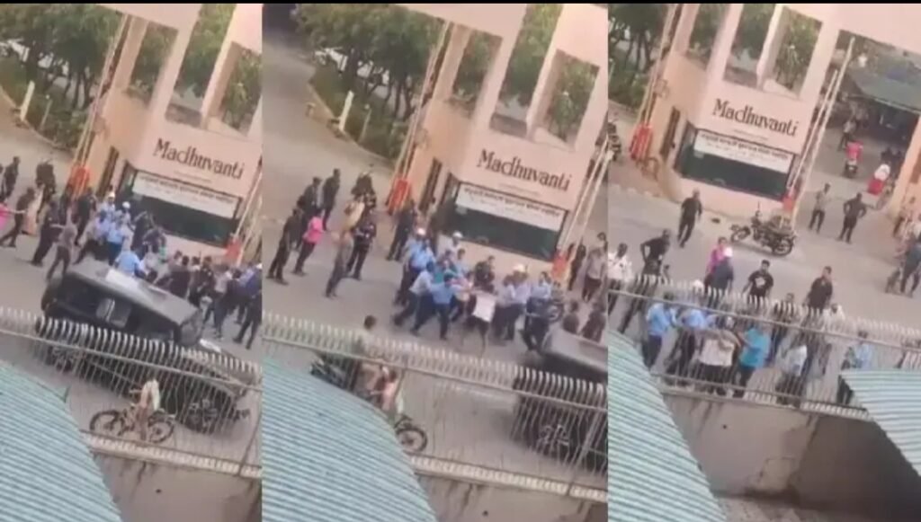 तेथे नेवरकर व आश्विनी हे वाद घालून अरेरावीची भाष करुन अंगावर धावून जात होते. तेव्हा फिर्यादी व त्यांचा मुलगा त्याचे वाद सोडविण्यासाठी गेले असता नेवरकर याने फिर्यादी यांना धक्काबुक्की करुन हाताने मारहाण केली. तेव्हा त्यांचा मुलगा फिर्यादींना वाचविण्यासाठी आला असताना तेथे असलेल्या ८ ते १० सुरक्षा रक्षकांनी फिर्यादी व ओमकार यांना लाथाबुक्क्यांनी मारहाण केली. तसेच त्यांच्या पतीस नेवरकर व आश्विनी यांनी शिवीगाळ करुन मारहाण केली. या मारामारीत त्यांचा मुलगा ओमकार याच्या डोक्याला, तोंडास व इतर ठिकाणी मार लागला. ससून रुग्णालयात उपचार केल्यानंतर त्यांनी नांदेड सिटी पोलिस ठाण्यात फिर्याद दिली आहे.