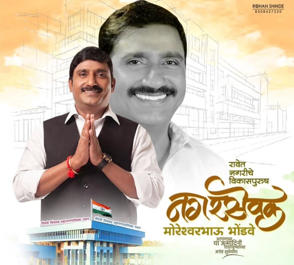 पिंपरी चिंचवड : रावेत गावाचे खरे शिल्पकार, लोकाभिमुख नगरसेवक, जनतेच्या मनात अढळ स्थान निर्माण करणारे माननीय श्री. मोरेश्वर भोंडवे यांचा आज वाढदिवस! रावेतचा सर्वांगीण विकास, सुशोभीकरण आणि स्वच्छता यामध्ये त्यांचे अमूल्य योगदान आहे.