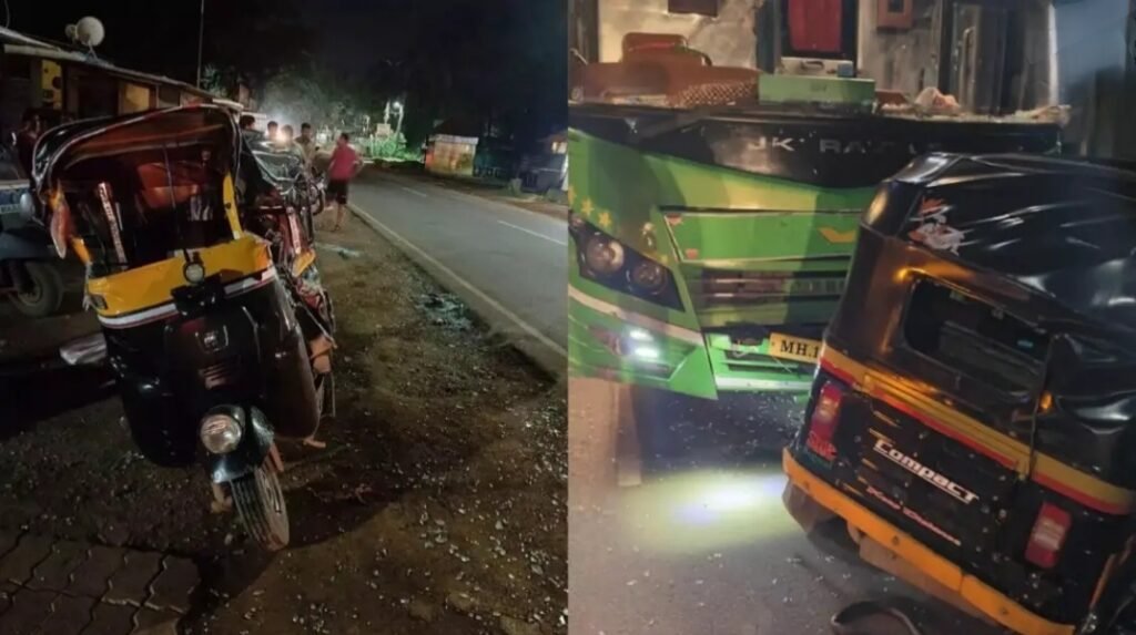 रायगड : रायगड जिल्ह्यातील मुंबई-गोवा महामार्गावर अपघाताची मालिका ही गेल्या अनेक वर्षांपासून सुरू आहे. माणगाव येथील मुंबई-गोवा महामार्गावरील गुरुकृपा हॉटेलसमोर भरधाव खाजगी बसने एका प्रवासी रिक्षाला जोरदार धडक दिली.