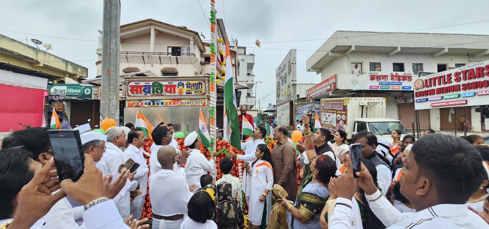 рдпрд╛ рд╕реЛрд╣рд│реНрдпрд╛рдд рд╡реНрдпрд╛рдкрд╛рд░реА рд╡рд░реНрдЧ рд╡ рд╢рд╛рд▓реЗрдп рд╡рд┐рджреНрдпрд╛рд░реНрдереНрдпрд╛рдВрдиреА рдПрдХрддреНрд░ рдпреЗрдКрди рд╕реНрд╡рд╛рддрдВрддреНрд░реНрдп рджрд┐рди рд╕рд╛рдЬрд░рд╛ рдХреЗрд▓реНрдпрд╛рдиреЗ рдкрд░рд┐рд╕рд░рд╛рдд рджреЗрд╢рднрдХреНрддреАрдЪрд╛ рдЖрдгрд┐ рдРрдХреНрдпрд╛рдЪрд╛ рдЕрдиреЛрдЦрд╛ рдорд╛рд╣реЛрд▓ рдЕрдиреБрднрд╡рд╛рдпрд▓рд╛ рдорд┐рд│рд╛рд▓рд╛.